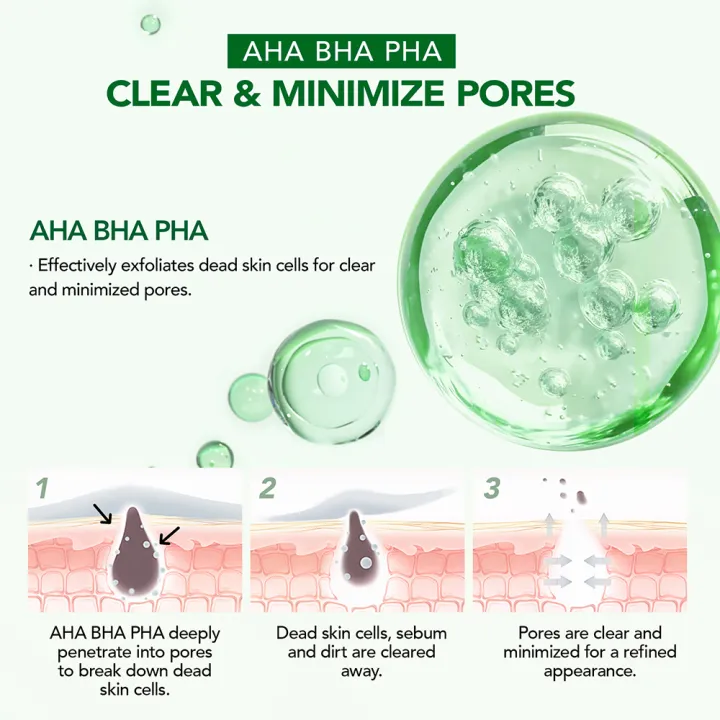 - 🌫️ AHA, BHA, PHA – Gentle exfoliation & pore cleansing